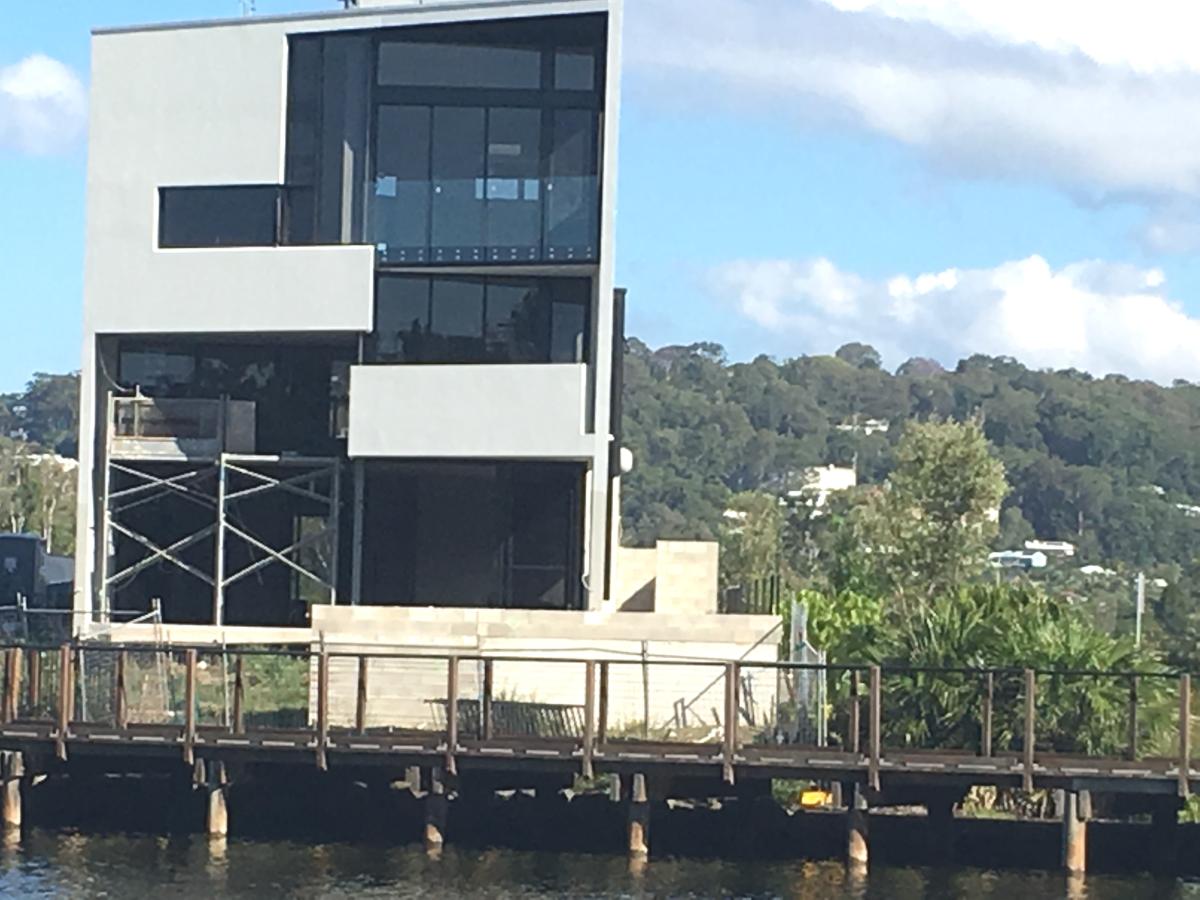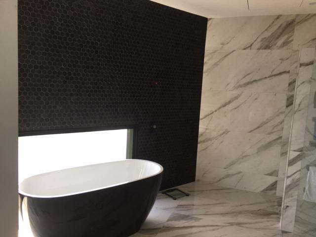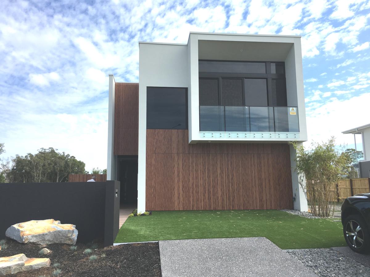 Drama of black and white and elements of warming timber tones allows this design to blur the boundaries between three and two story lines.