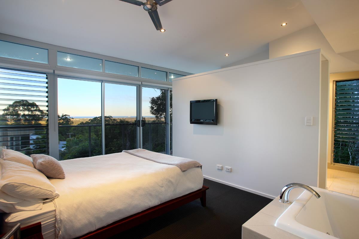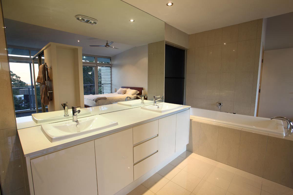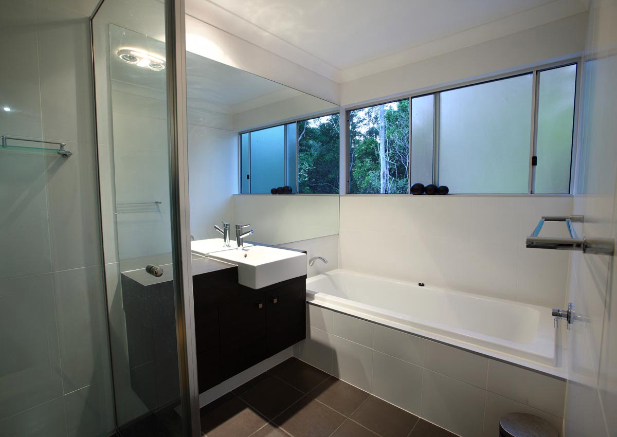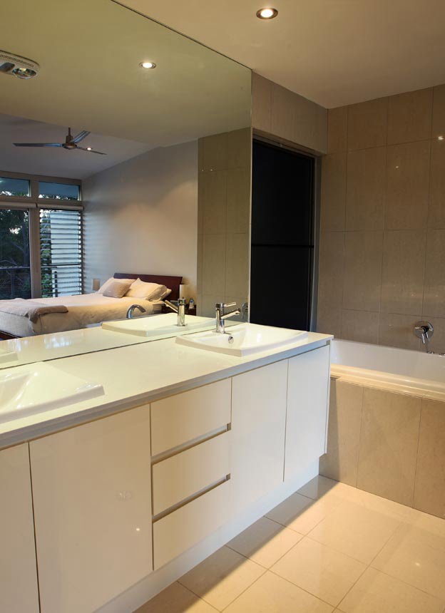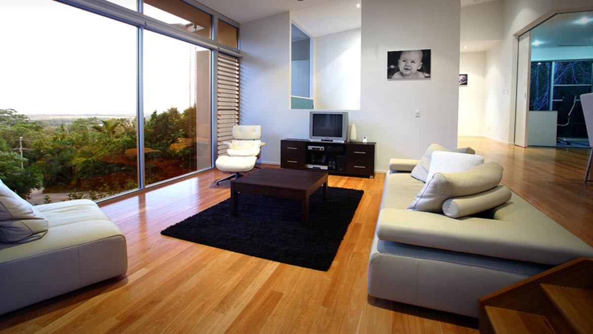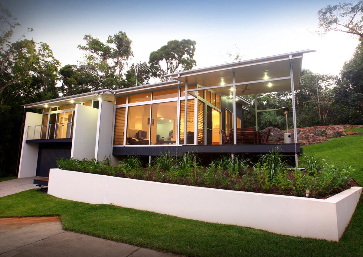 A split level layout pursues the natural contours of the land, allowing for the interior living room to be sunken, and the pool zone to walk out to flat land.