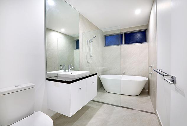 This 15m wide block displays a very cute kitchen, outdoor living element and stunning open plan bathroom.
